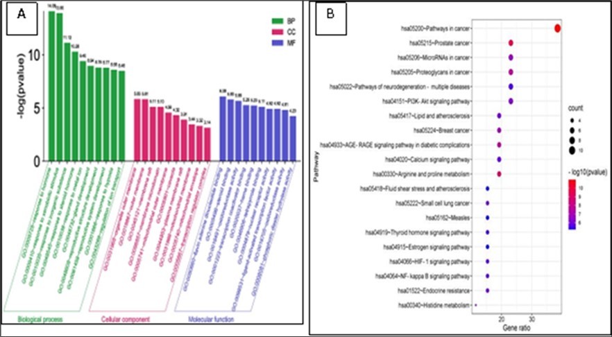 Gene ontology (GO) and kyoto encyclopedia of genes and genomes (KEGG) pathway enrichment of cross-targets were analyzed by Metascape database, and the visual analysis were carried out by Bioinformatics Tools.
